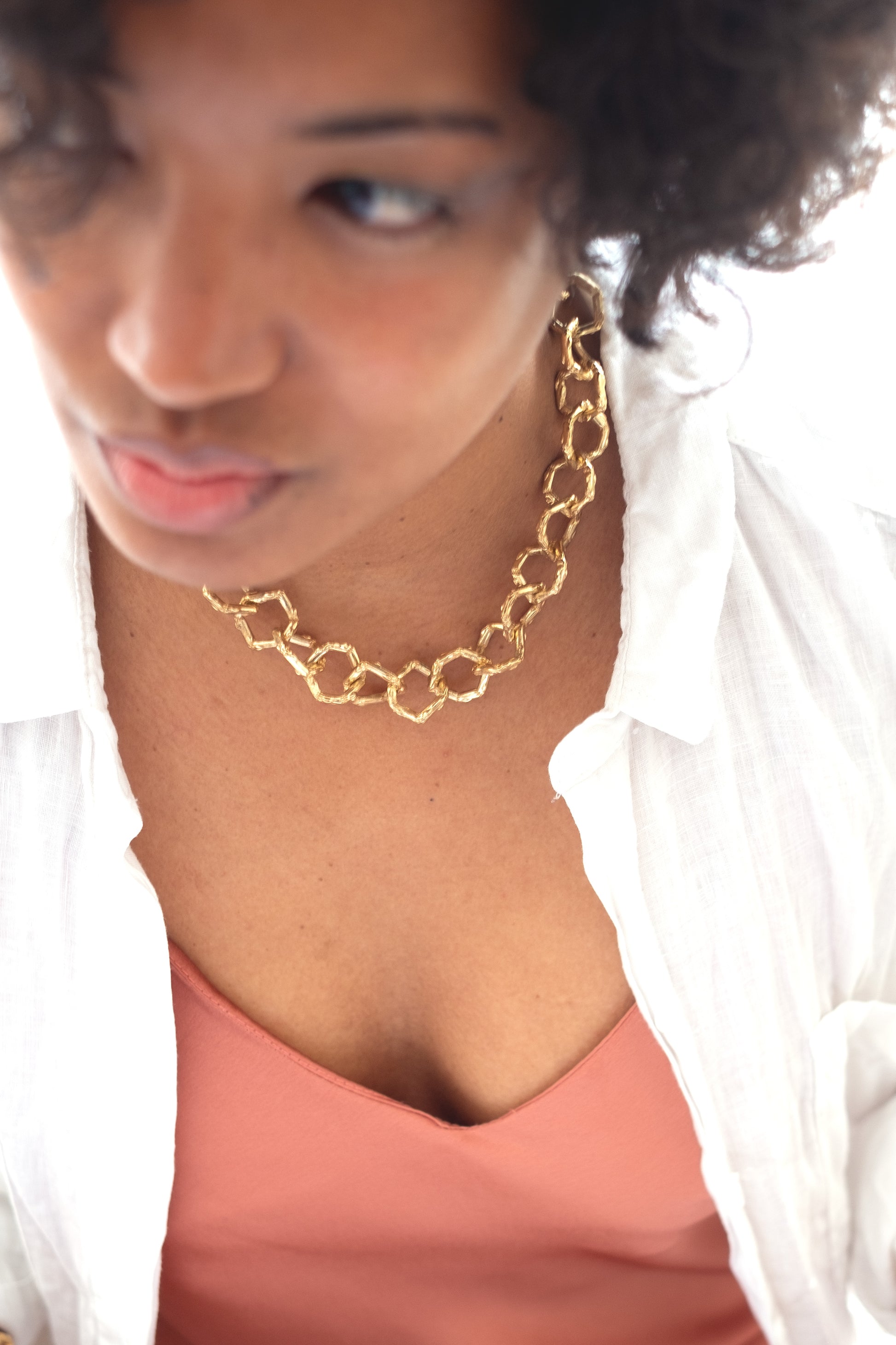 Il laccio Mystic B amboo Chain Neck è eticamente realizzato a mano in ottone placcato oro 18 carati .
